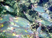 水中カメラでこれらの個体を写真に納めようと、波間の動く魚たちを追った。