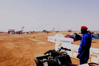 小さな空港から10分も歩かないで着く広場に食料供給や参加者、サポート隊のテントが張られた。湿気が多く、緑も深かったが、砂地だった。日本のいすゞが支援したチームのテントもそこにあった。