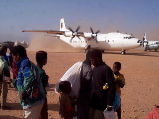 90年代後半になっても初期のC130型輸送機(1950年代製)が大威張りで飛んででいました。U N とかつては書かれていた文字が透けて見える輸送機(C130)も2機いました。何年か続けてです。
