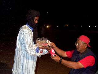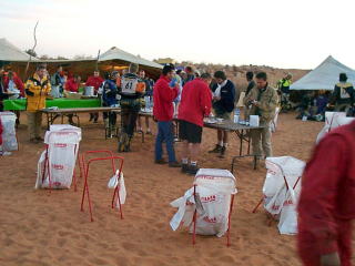 パリダカは主催者の調査隊が毎年夏にコース予定ルートを走り、ロードブックを作りながら、安全性や輸送の便宜などを考慮してキャンプ地を決めます。現地の人々とパリダカの一隊が通過する了解を取り付けるのも重要な仕事の一つになっています。ところが、その調査隊が車や所持品の多くをを奪われ、丸腰にされてアガデス(ニジェール)へ送り届けられました。1996年夏のことでした。