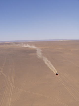 砂丘が連続しその間を縫うようにパリダカのルートは設定されていた。トップチームはとうに通過し、遅いアマチュア参加者がヘッドライトを点灯し、砂と格闘するように走っていた。夜の8時頃で砂丘は暗かった。