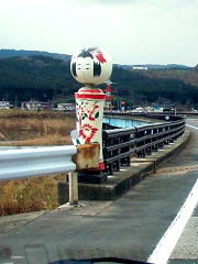 鳴子への国道。欄干にはこけしが 鳴子の土産はこけし