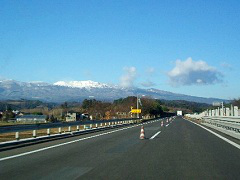 米沢へ向かう途中、好天に恵まれ、蔵王山への標識に招かれるように上山市から